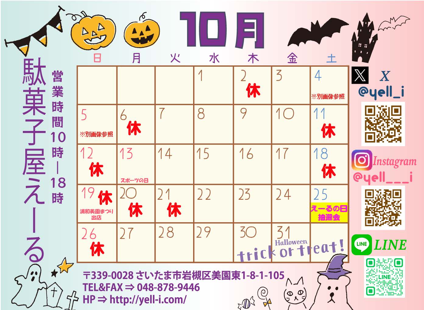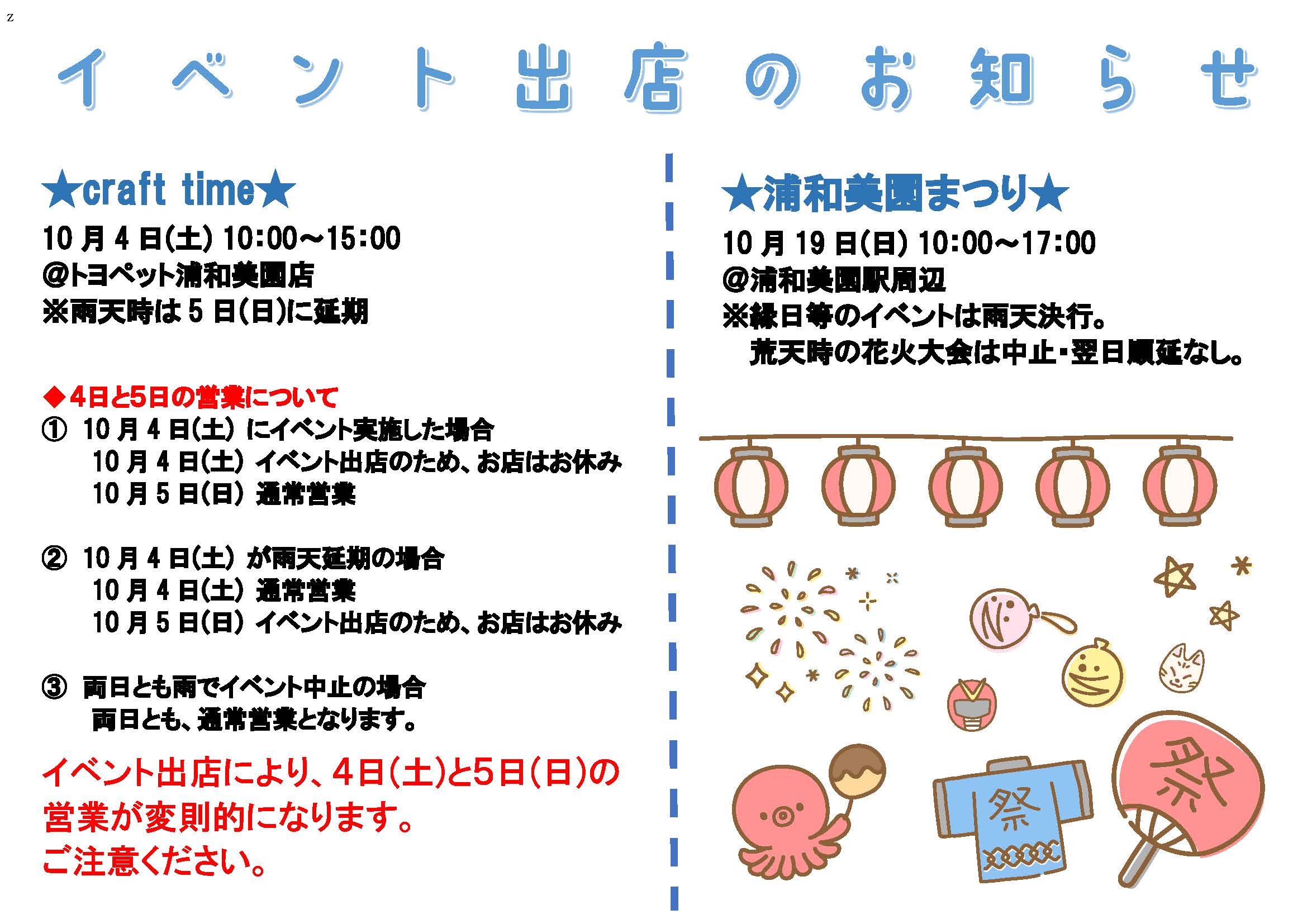 ●“10月の営業カレンダー”と“イベント出店のお知らせ”